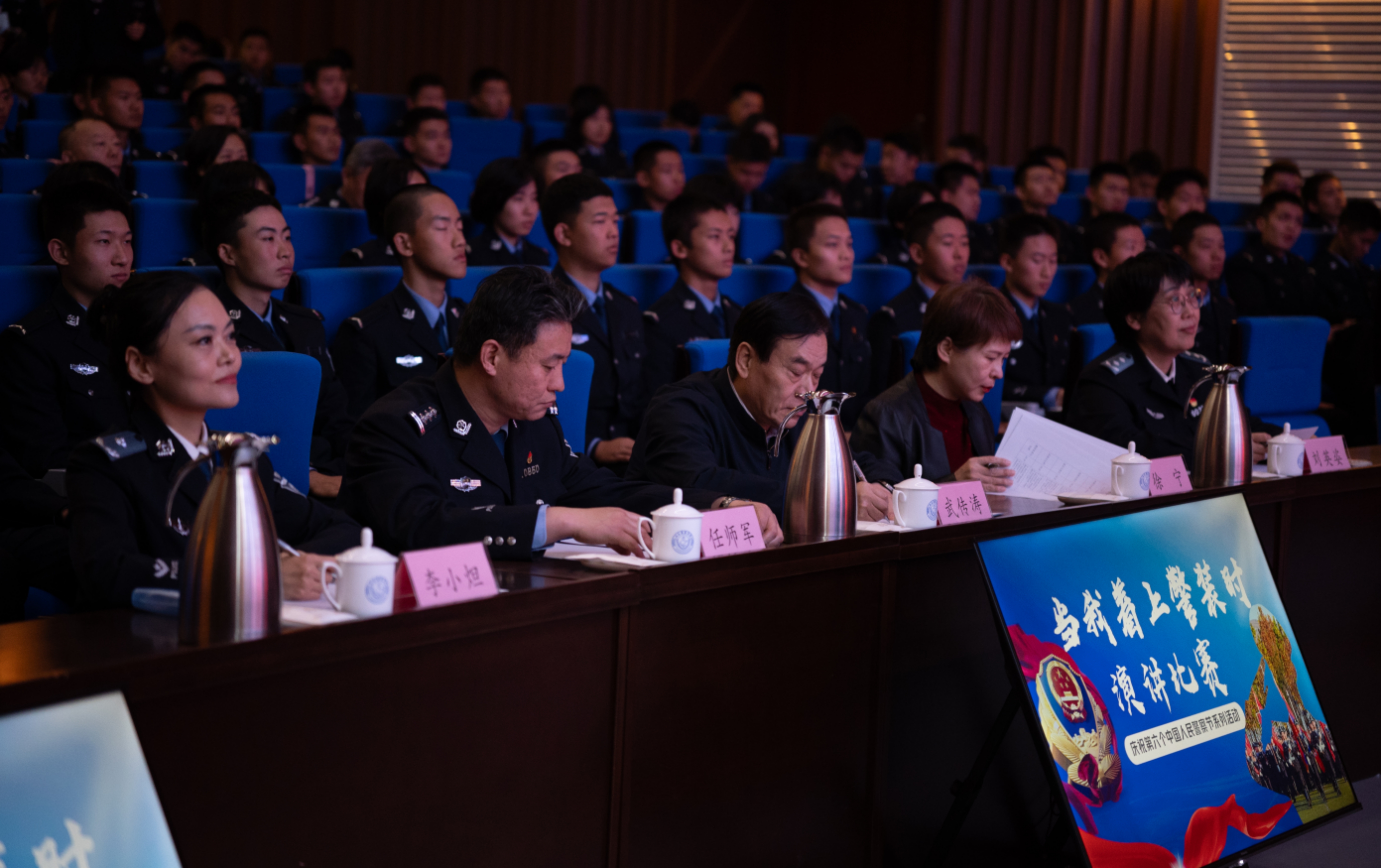 为庆祝第六个中国人民警察节,深入贯彻习近平总书记重要训词精神,加强忠诚警魂教育,筑牢学警职业信仰,我校于12月18日在图书信息综合楼礼堂举办了“当我着上警装时”演讲比赛决赛。学校党委副书记、院长毕可志,党委副书记、统战部部长王桂媛,党委委员、副院长贺曙敏出席活动。山东省社科联社会组织党委委员,山东省演讲学会会长、党支部书记武传涛,济南广播电视台主任播音员、首席主持人徐宁,济南市公安局团委负责人、大型活动策划人、导演任师军,山东警察学院公共基础教研部主任、教授刘英姿,山东警察学院干部培训部副教授李小炟担任评委,各二级学院主要负责人和学管老师及学生代表参加。