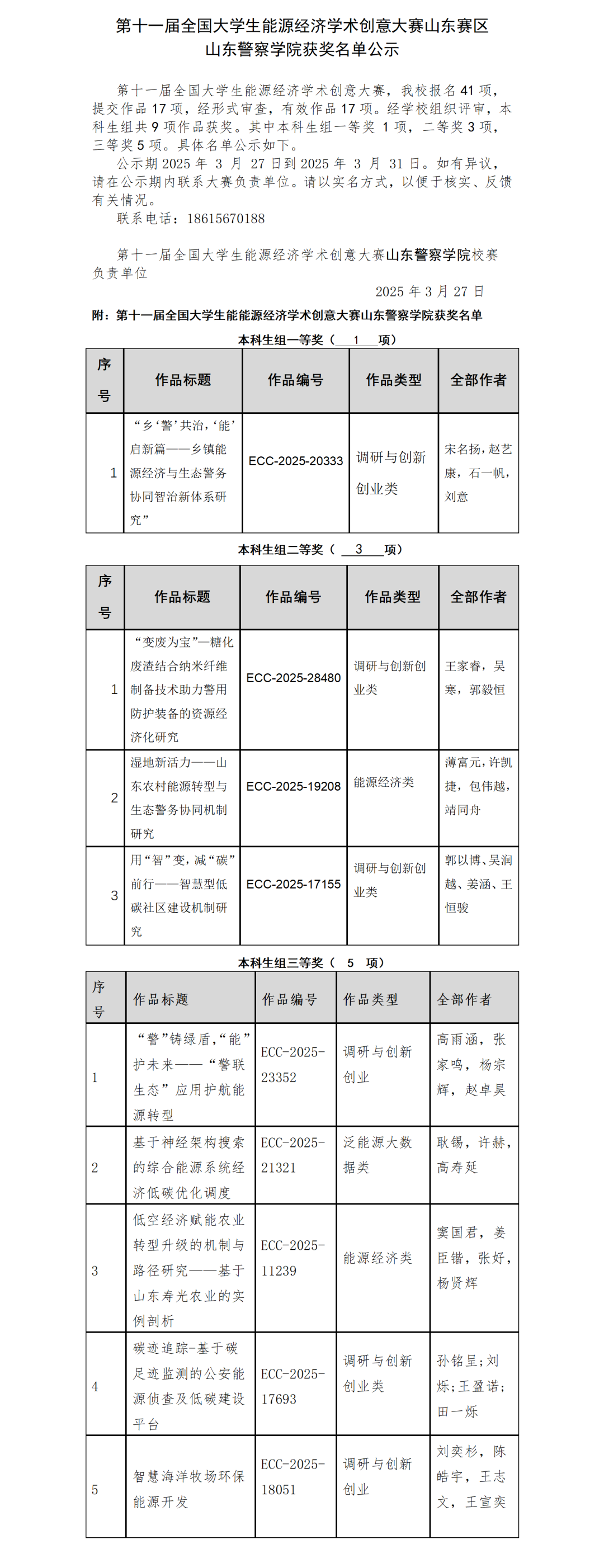本次比赛圆满结束,为参赛选手们提供了展示自我的宝贵机会,在能源经济领域的探索之路上,同学们将继续砥砺前行,不断创新。未来,我校将继续完善学生创新创业训练计划实施体系,坚持以赛促教、以赛促学、以赛促创,不断丰富竞赛形式和内容,为我校青年学警搭建更多创新平台,培养更多新时代警务人才,为新质公安战斗力的提升贡献山警力量。